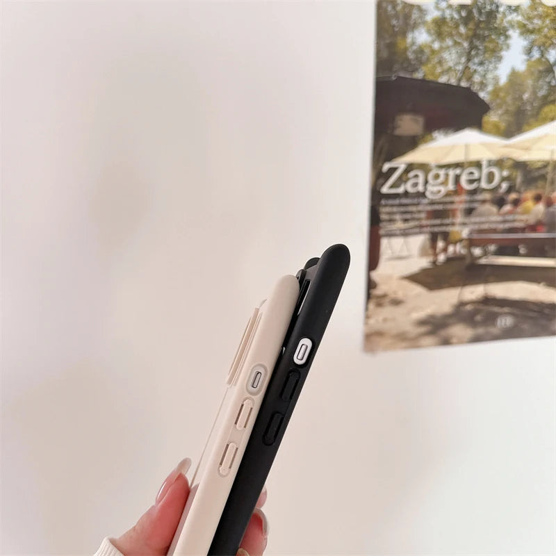 Korean Cute 3D Kitten Cats Ear Solid color Phone Case For iPhone 15 14 13 11 12 Pro Max Girl Silicone Shockproof Soft Cover